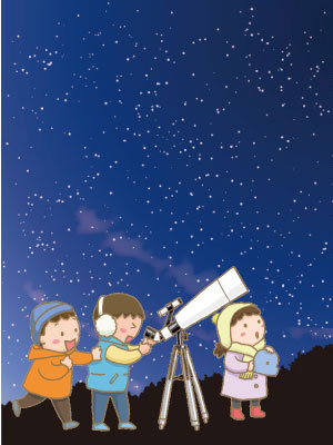 | 施設にある天体望遠鏡や双眼鏡を活用し、星空や月の観察会を行います。星を直接観察するとともに、星の美しさや星にまつわる様々な話などを聞くことで、宇宙や自然に対する興味や関心を高め、探究心を養います。